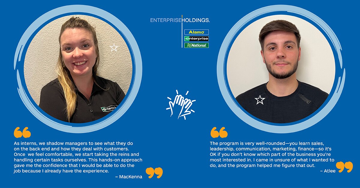 Atlee Cullison, un autre diplômé du programme de stage, a apprécié la façon dont Enterprise lui a donné un moyen de démarrer sa carrière en affaires avec un sens de l’orientation, ce qui est souvent difficile pour les récents diplômés. Après avoir commencé à travailler en 2021, il a continué de devenir stagiaire en gestion et est maintenant directeur adjoint.