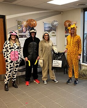 Group of employees in Halloween costumes